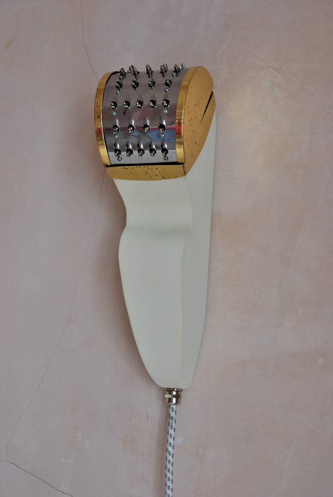 Kinetic sculpture and time-based work employing electronics, mechanics, found objects, domestic appliances, furniture, water, living tree, wire, wood, steel, brass, aluminium, stainless steel, electric motors.