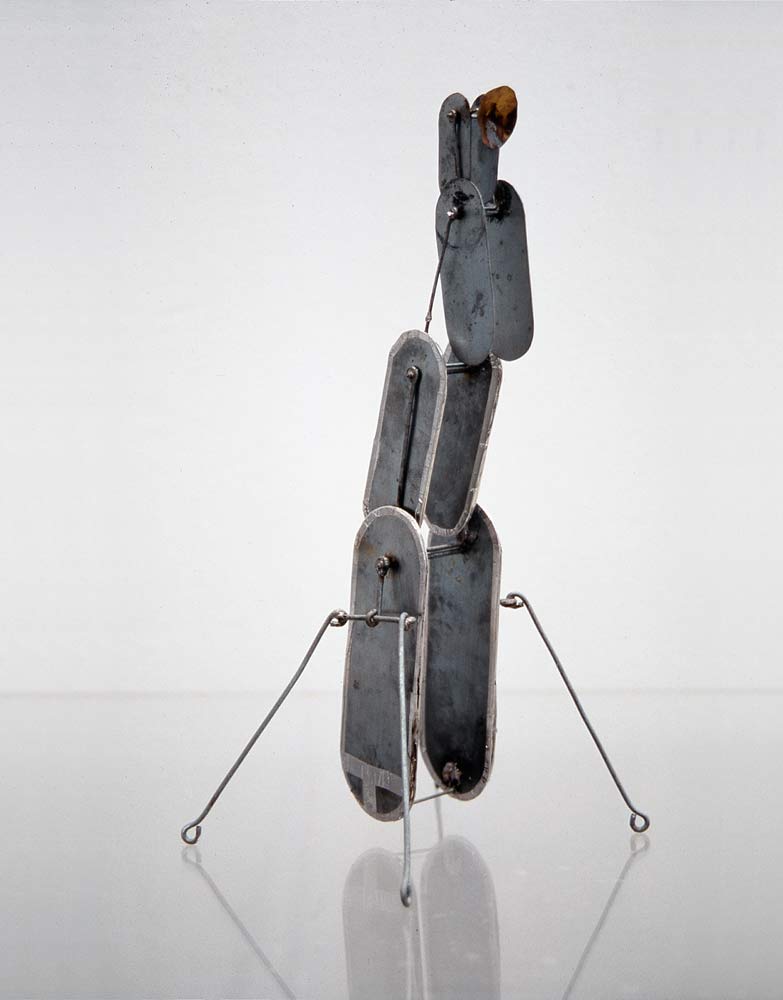 The chair that models itself in the image of Kafka's modern anti-hero is, by means of its appellation, also a Monument to the Isms. The author of this work, British artist Theo Kaccoufa, explains that the title acknowledges the 20th century art movements that were 'once vigorous creatures roaming the earth' and which now 'occasionally kick and struggle to regain their footing'. In manifesting this art historical critique in the ultimate image of alienation, mixed metaphors of metamorphosis abound: where Kafka begins his novella with the ridiculous but resonant proclamation that a man is now a large insect, Kaccoufa conjures the equally contentious proposal that artistic movements are an endangered species victim to the dialectical dangers of historical negation. These bold statements about modernity are brought to bear, remarkably, by a piece of furniture; that which is understood to be neither animate, nor driven by momentum, in accordance with the ascensional logic of (art-) history.